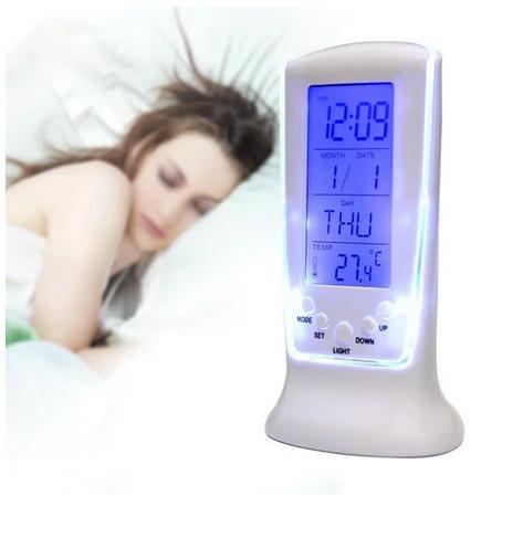 Item description Clocks Frozen Led Digital Clock Despertador Desk Clock Bedside Alarm Clock Electronic Watch Square Gift For Kids LCD displays month, date, week, hour and minute 12/24H format LCD displays surrounding temperature Alarm with music,7 different alarm songs and 2 different ‘didi’ sound; snooze function Can set up birthday alarm, by then birthday song will be played automatically Countdown time function Blue LED Backlight Powered by 3 AAA batteries (Not Included) Dimension:12.5cm*5.8cm*5.3cm Color: white Without original package.